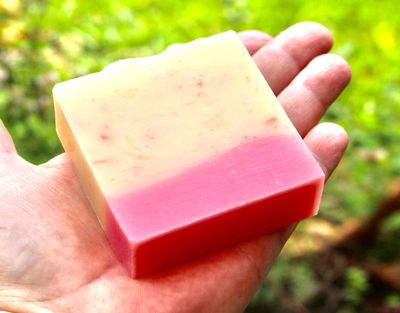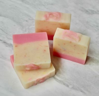Ingredients: Coconut Oil, Soybean Oil (hydrogenated), Rice Bran Oil, Olive Oil, Jasmine Rice Water, Castor Oil, Avocado Oil, Lye, Jasmine Rice Puree, Japanese Cherry Blossom Fragrance Oil, Rose Geranium Essential Oil, Mica and Neon Colours.