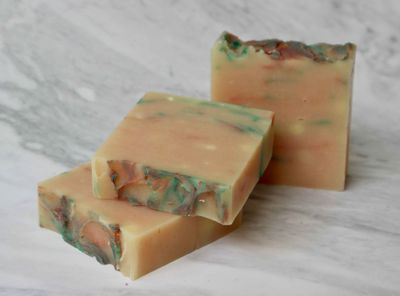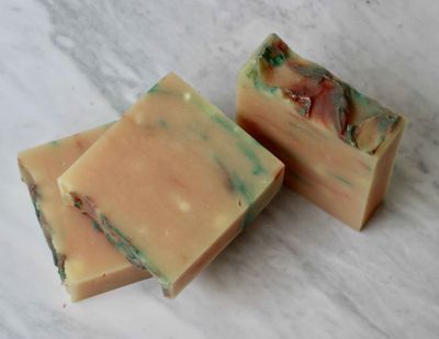 Unfortunately, the fragrance was a bit naughty - as sometimes happens with florals. This has affected the appearance of the soap, but not the quality. You will see some little white-ish lumps in the bars. They are not scratchy, but rather they just look a bit unsightly. For this reason, I am selling these full sized bars at 2020 prices! Get 'em while you can.