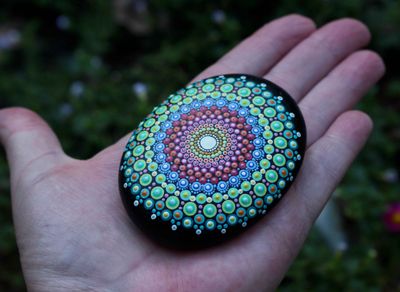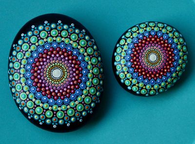 These two stones have lots of detail with extra small dots, and a bright, fresh range of colours to uplift your soul. They look great together or can be purchased individually.