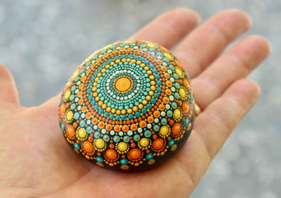 My stones are all painted in indoor/outdoor acrylic and spray sealed. Intended for indoors, they can be displayed outside but I cannot guarantee longevity.